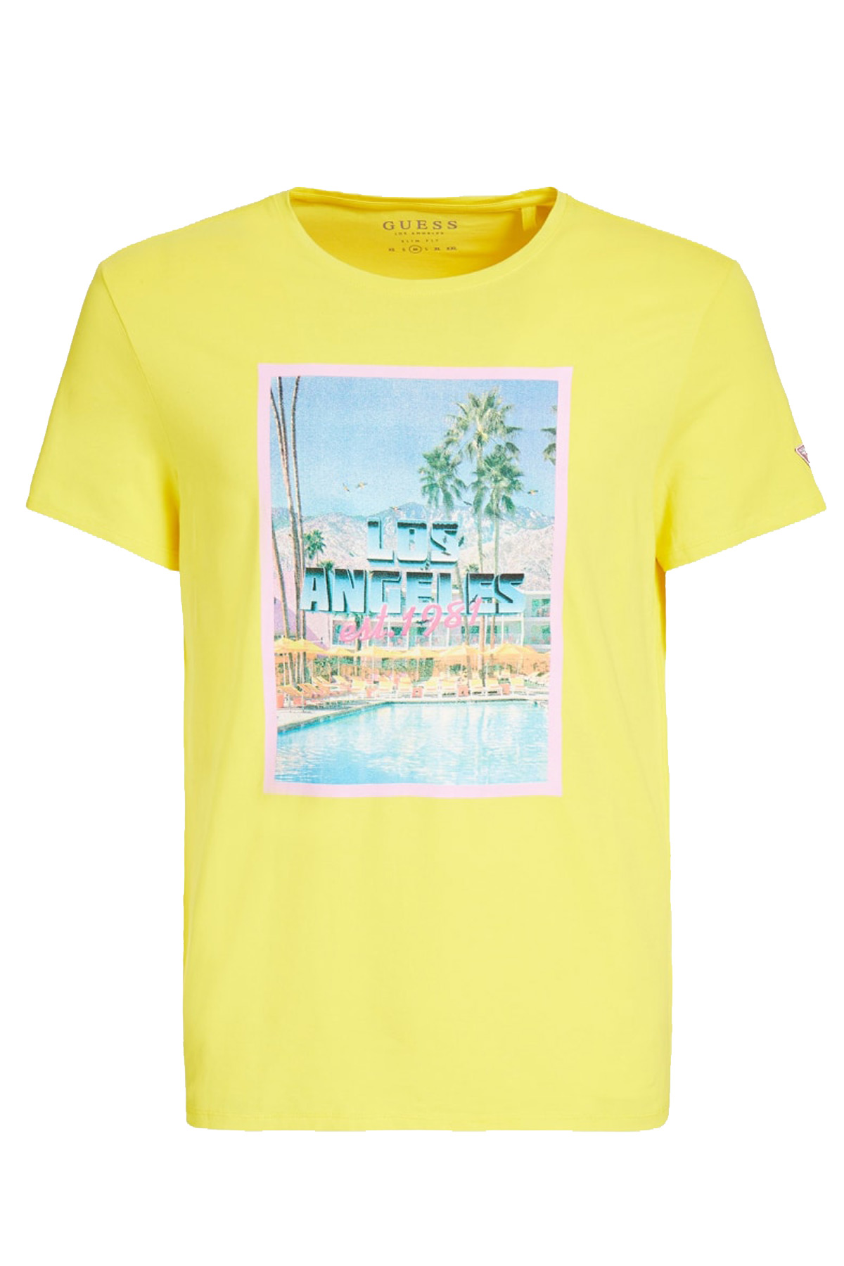 GUESS, T-Shirt gialla con stampa frontale Los Angeles uomo ragazzo