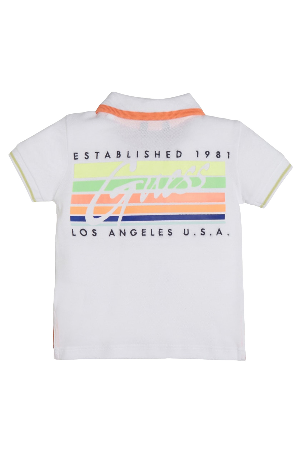 GUESS, Polo t-shirt bianca con dettagli fluo e stampa sul retro neon neonato bambino bimbo