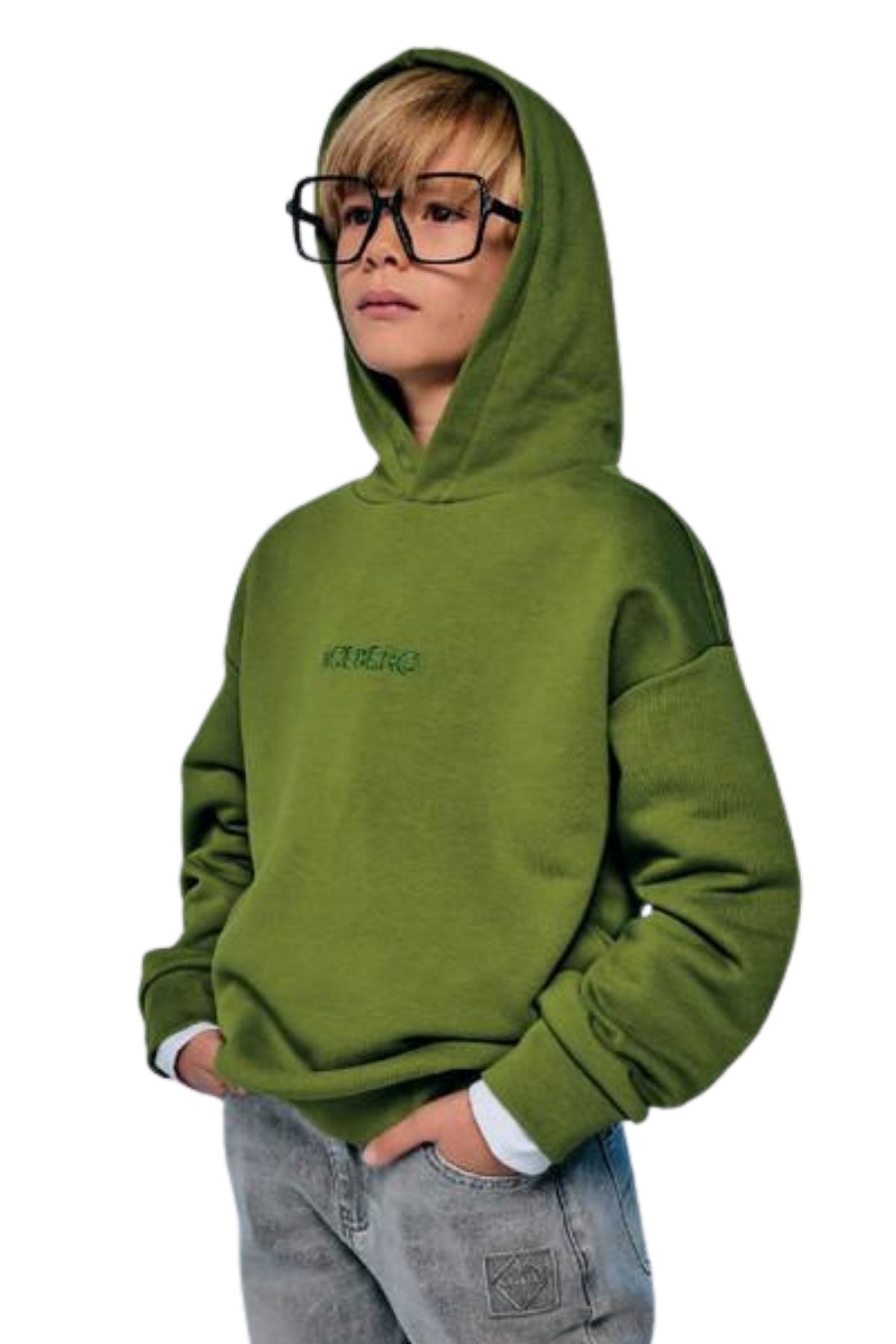 Linee pulite e tonalità naturali per questa felpa con cappuccio in verde oliva, perfetta per un look casual e rilassato