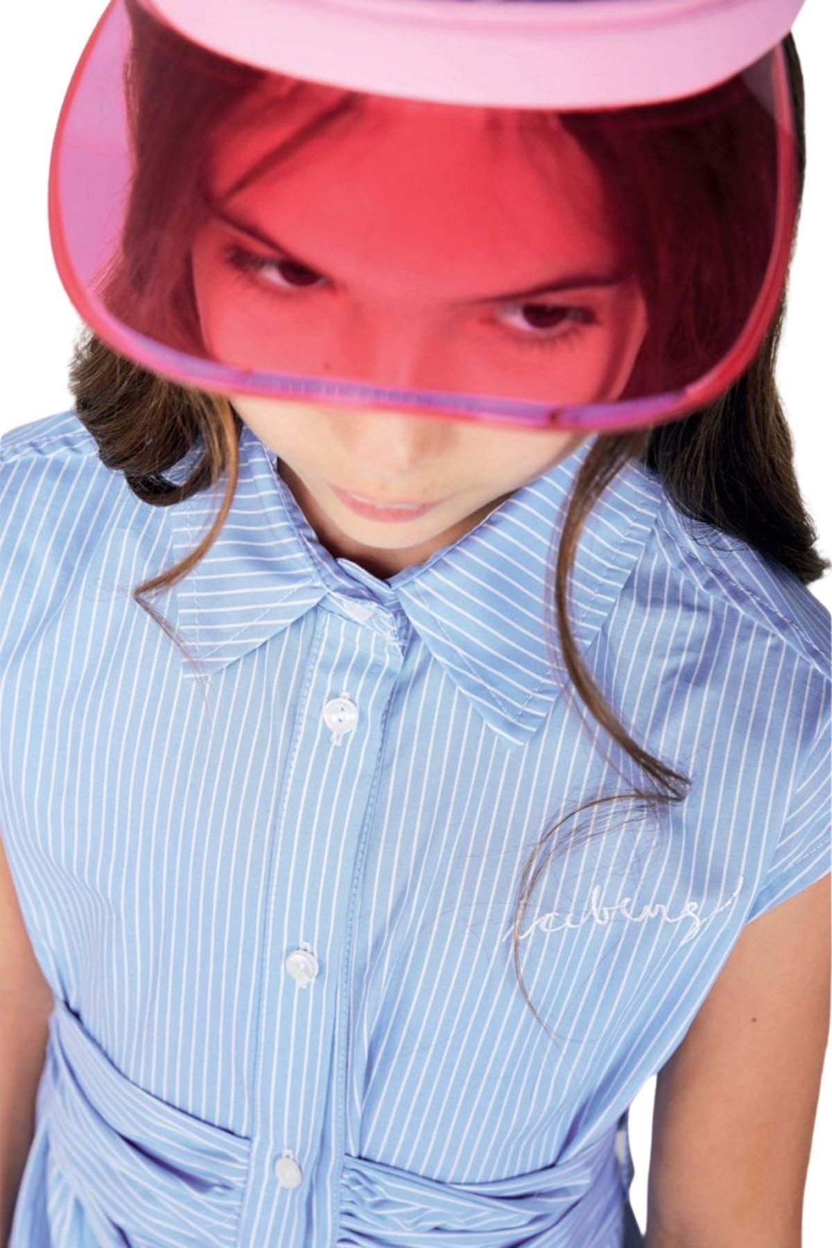 Realizzato in delicata tela con strisce azzurre e bianche