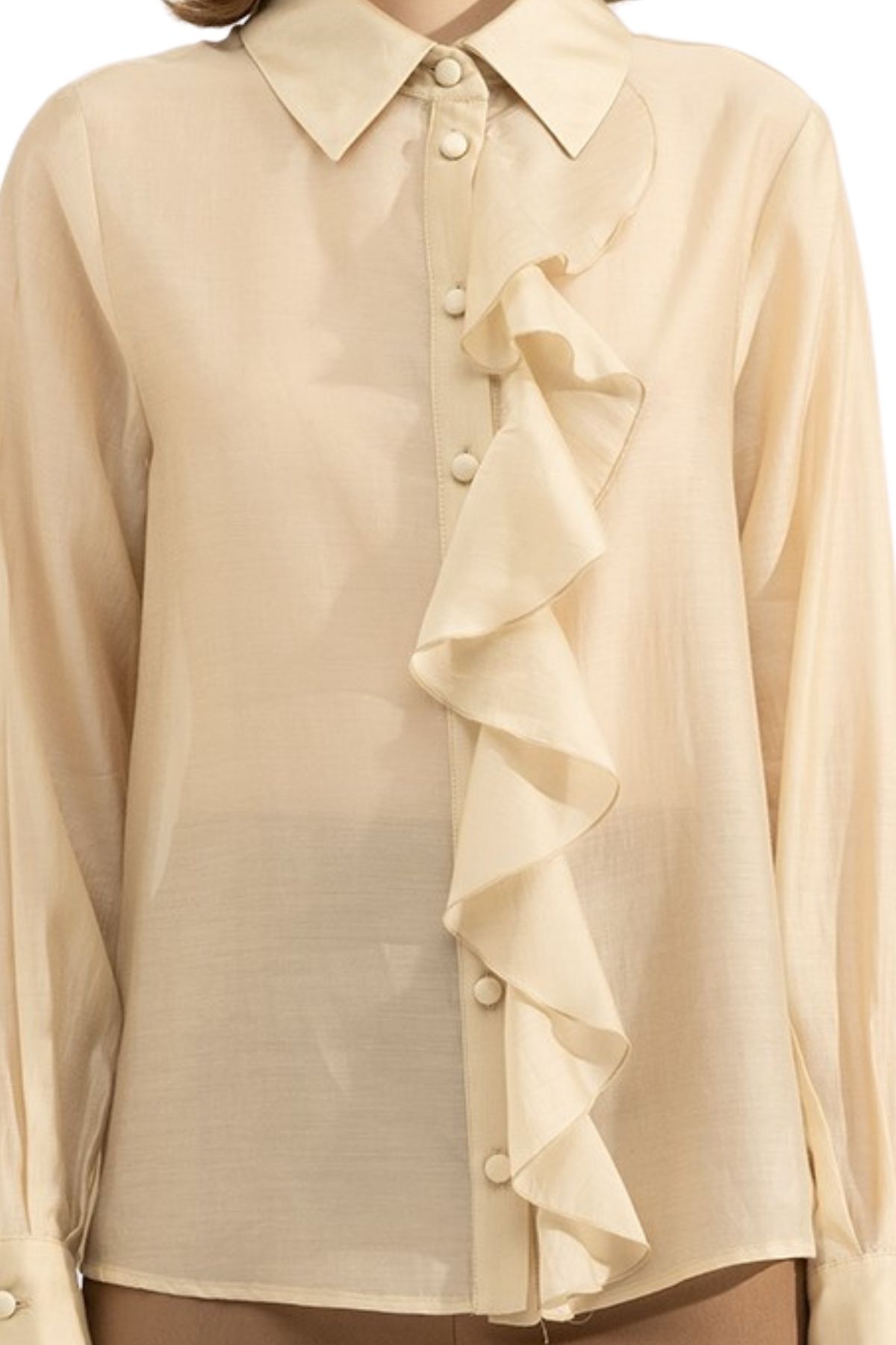 Camicia con rouchesCon collettoAbbottonatura frontale con bottoni in tessutoComposizione: 85% AL 15% PL