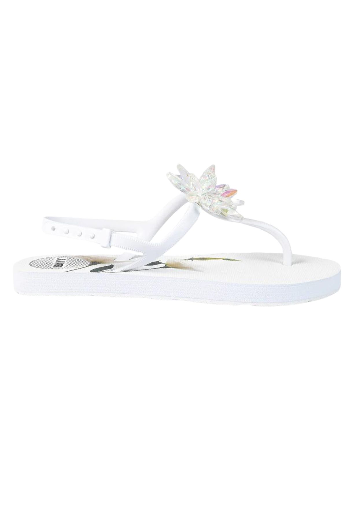 Sandalo infradito bianco decorato dalla stampa di unelegante fiore.