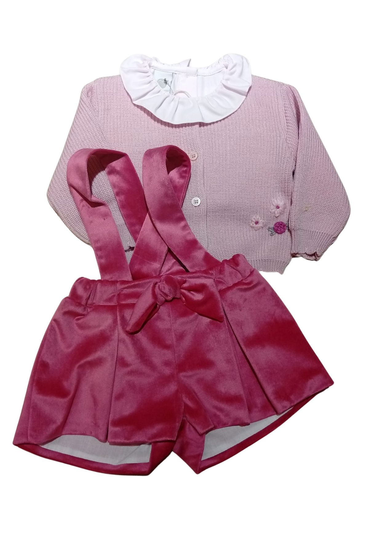 Salopette con fiocco, in morbida ciniglia
