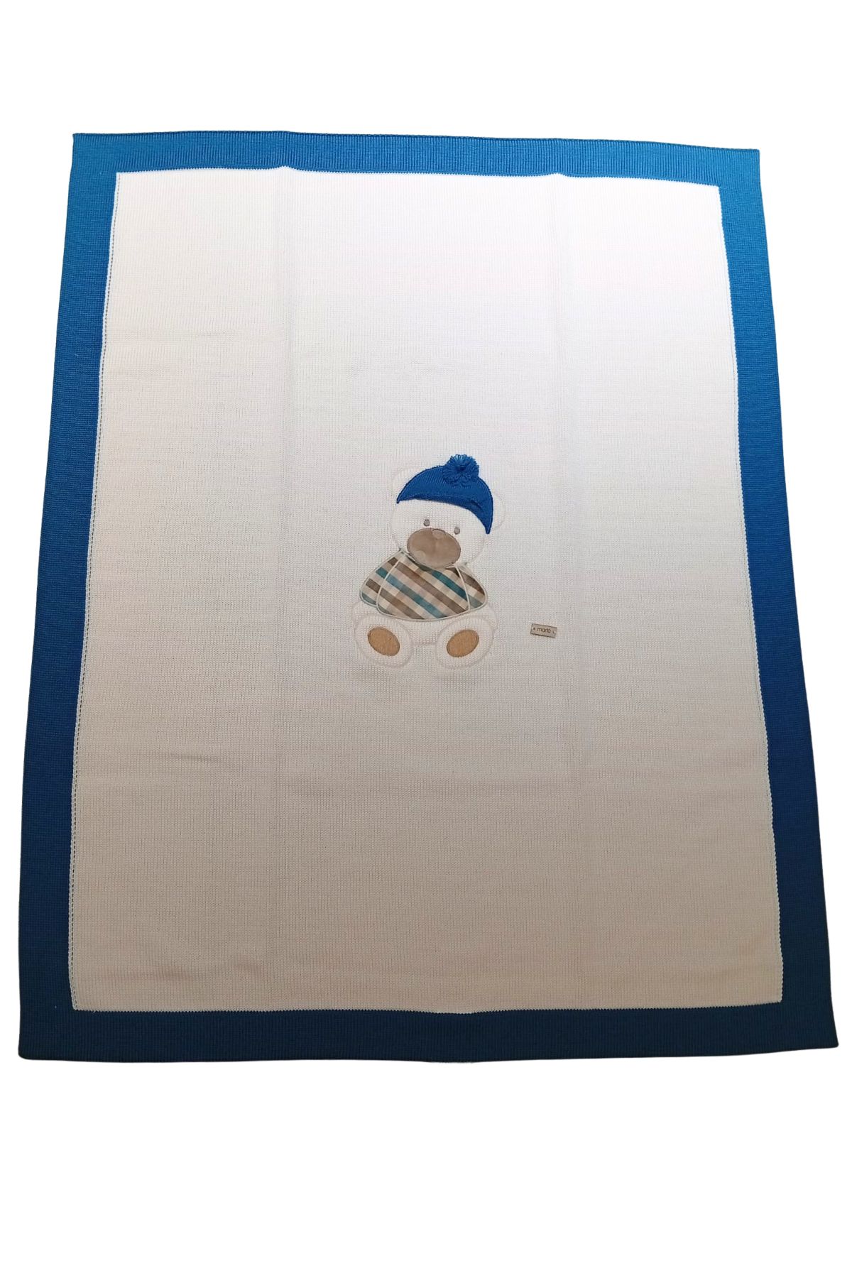 Coperta teddy MARLU' naturalbio e blu zaffiro