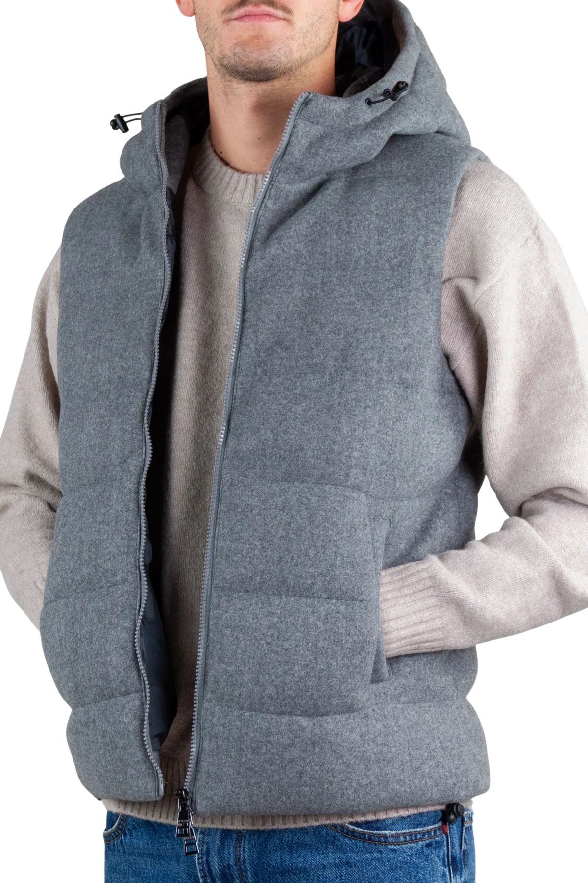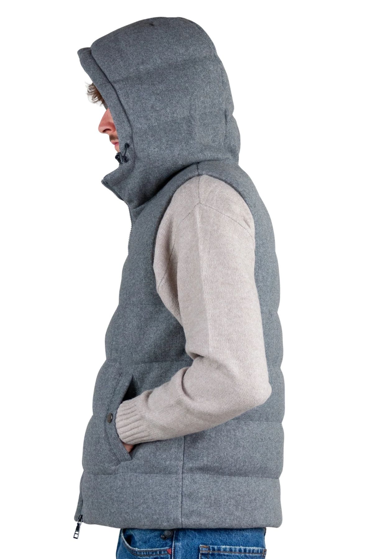 Giubbino smanicato con cappuccio e zip