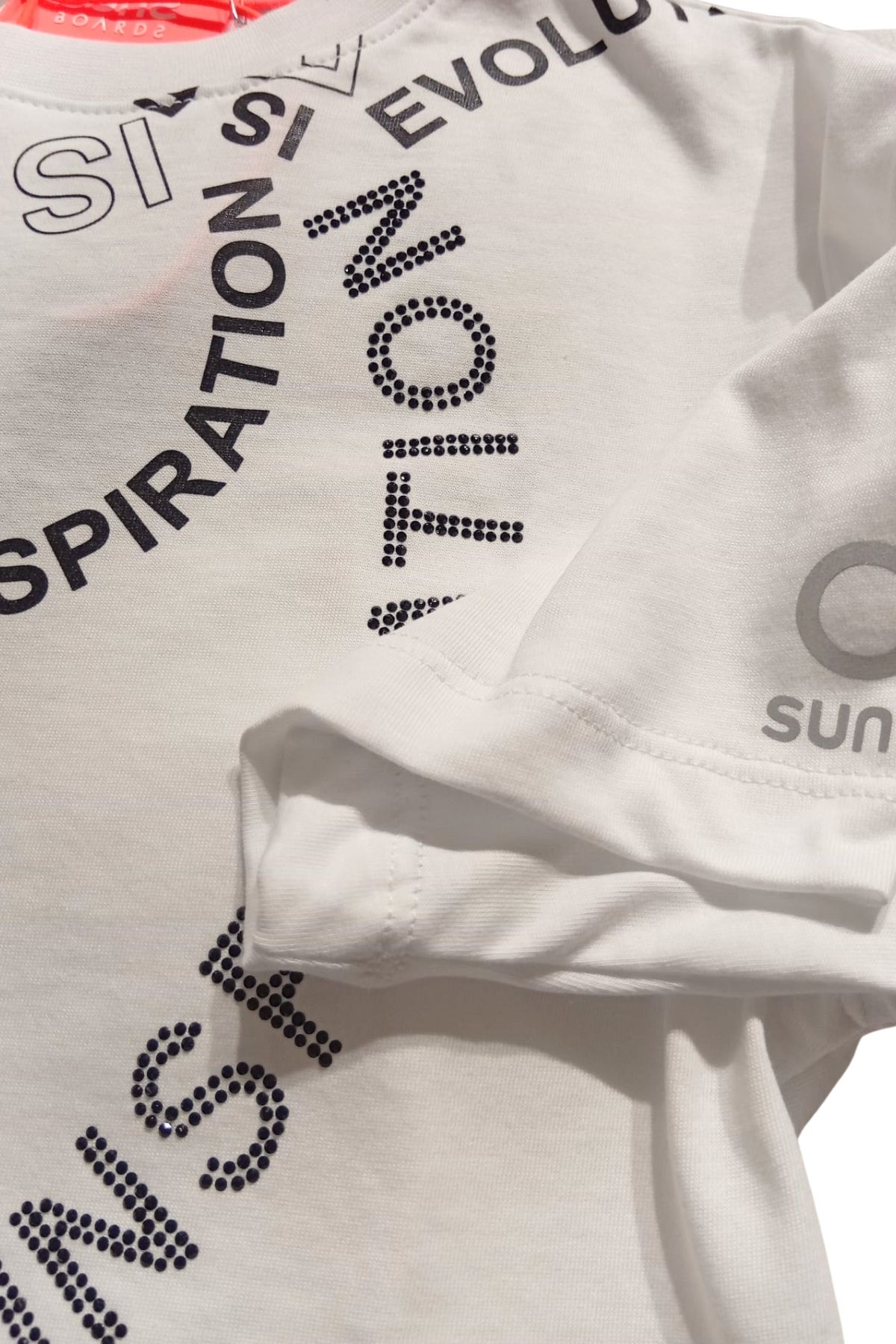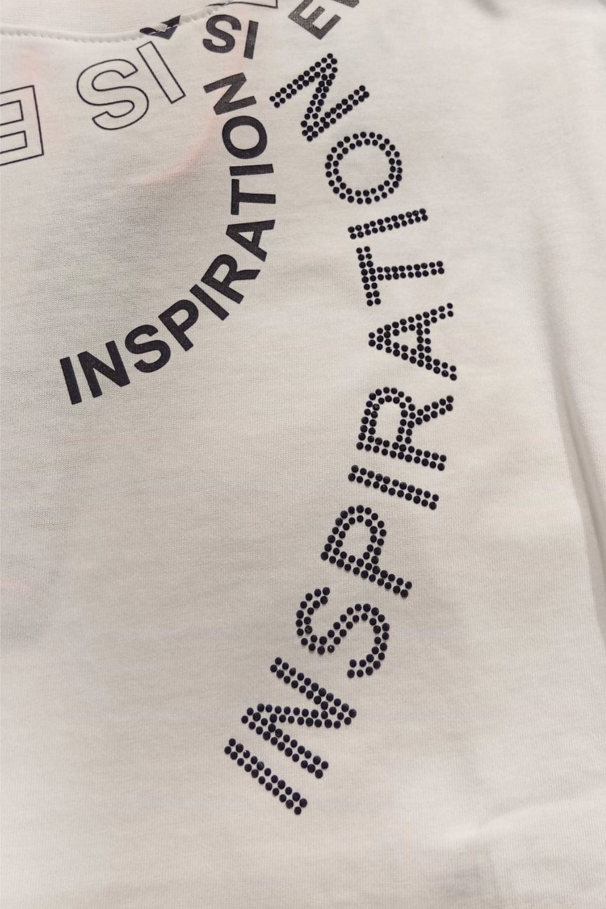 Stampa avanti e sul retro, con scritta con strass