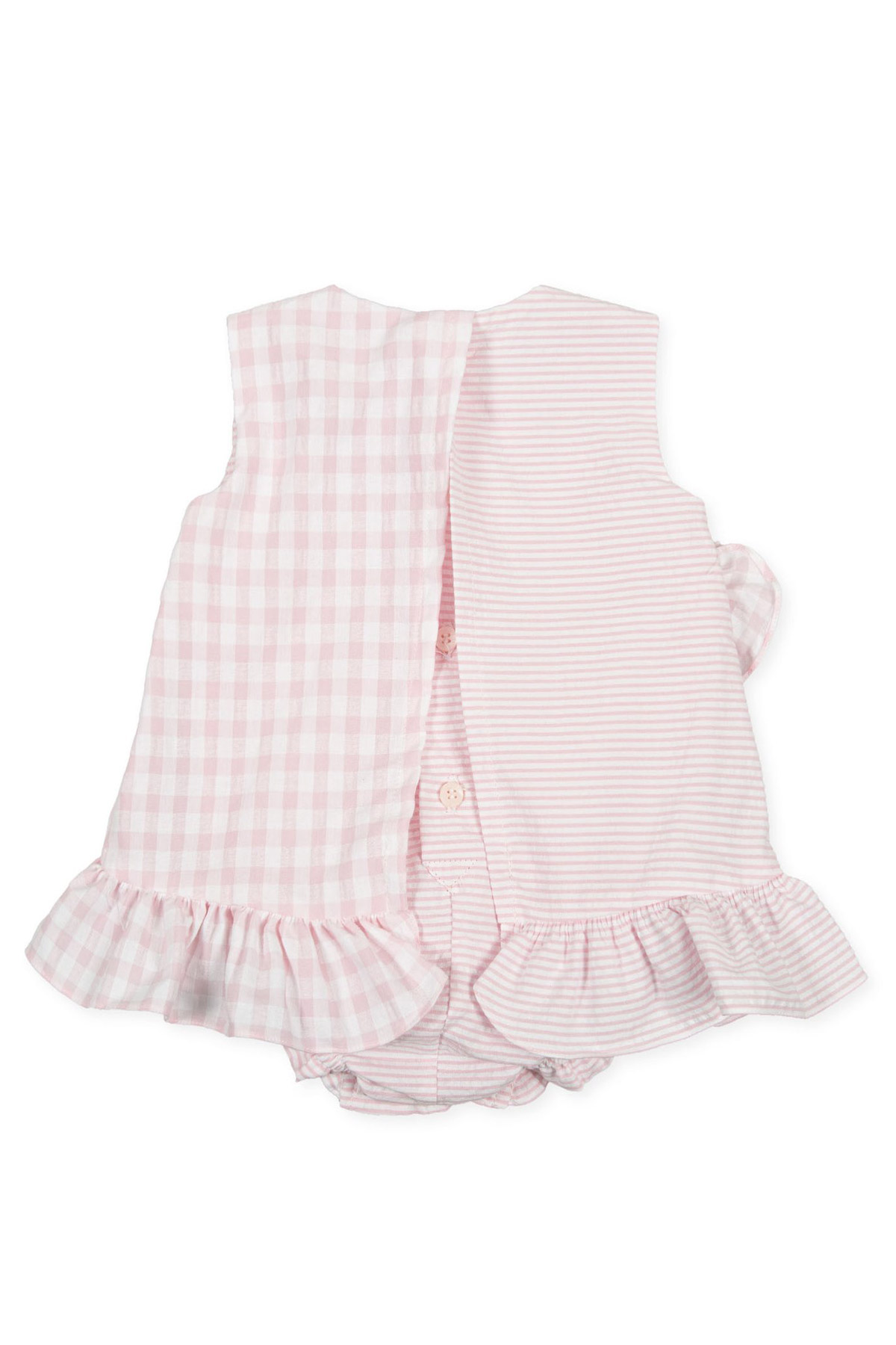 Tutto Piccolo, Pagliaccetto rosa a quadri e righe con balze nascita neonata bebè