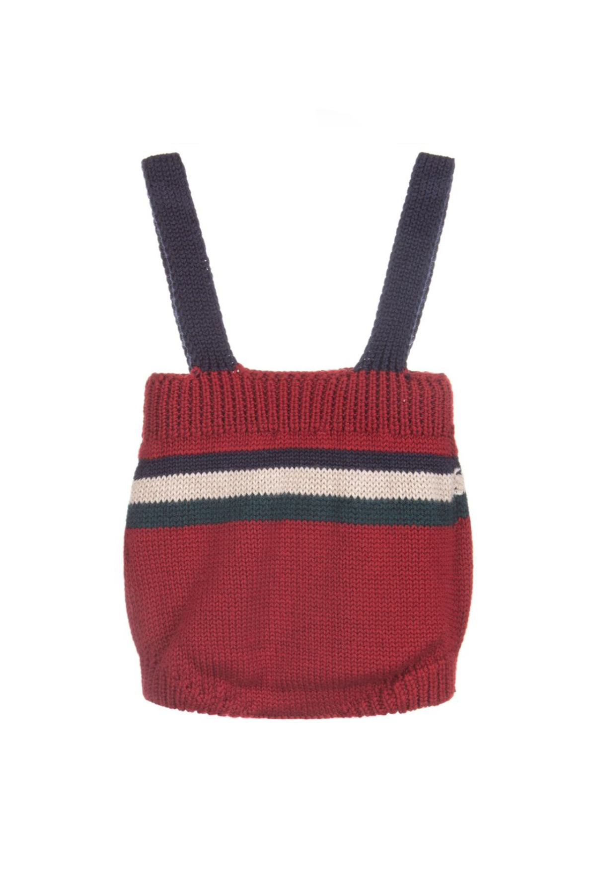 WEDOBLE, Shorts Pantaloncini lavorati a maglia rossi e blu in lana con bretelle nascita neonato bimbo bambino